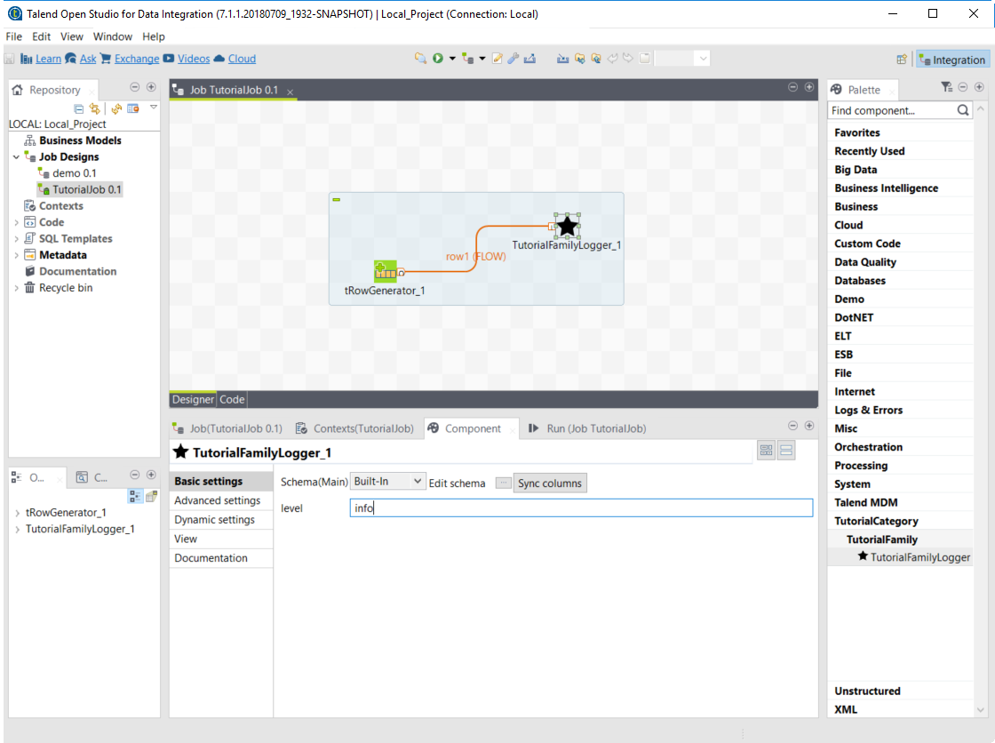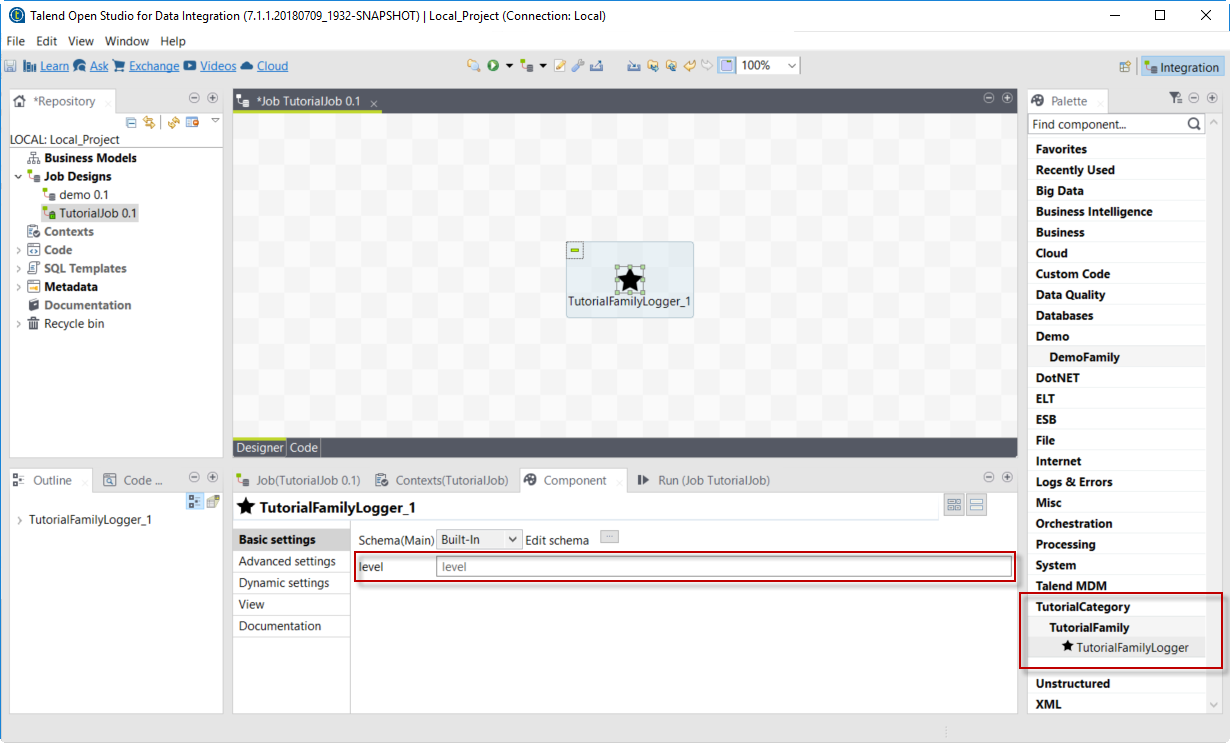 At this point, the new component is available in Talend Open Studio, and its configurable part is already set. But the component logic is still to be defined.