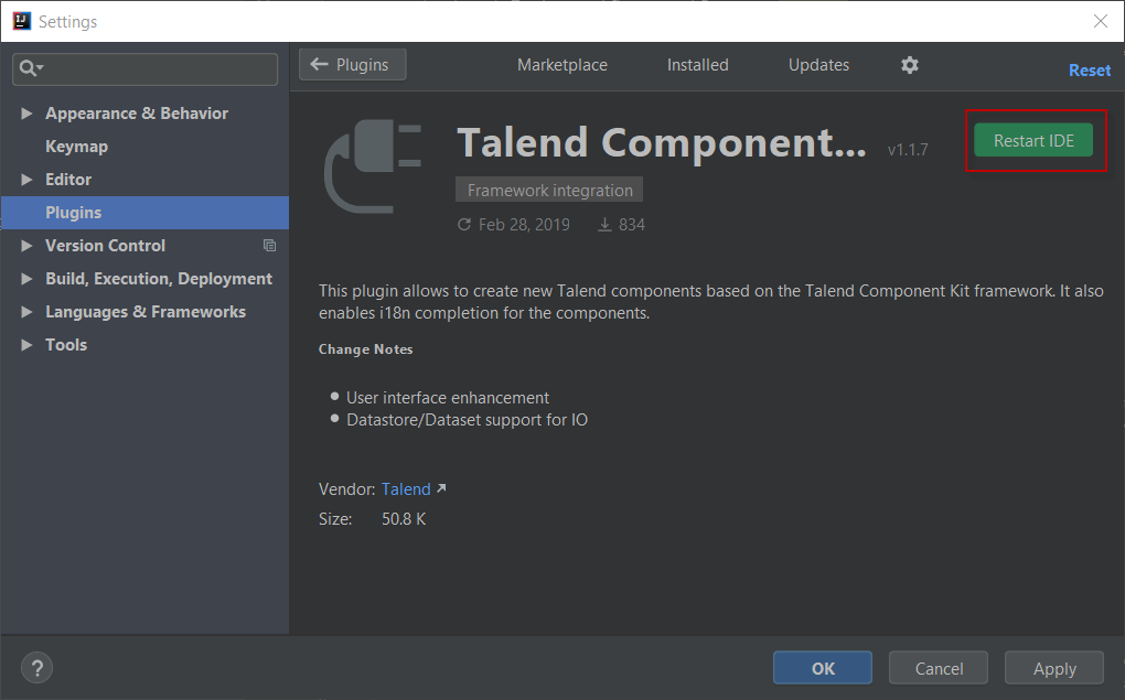 The Talend Component Kit IntelliJ plugin is a plugin for the IntelliJ Java IDE. It adds support for the Talend Component Kit project creation.