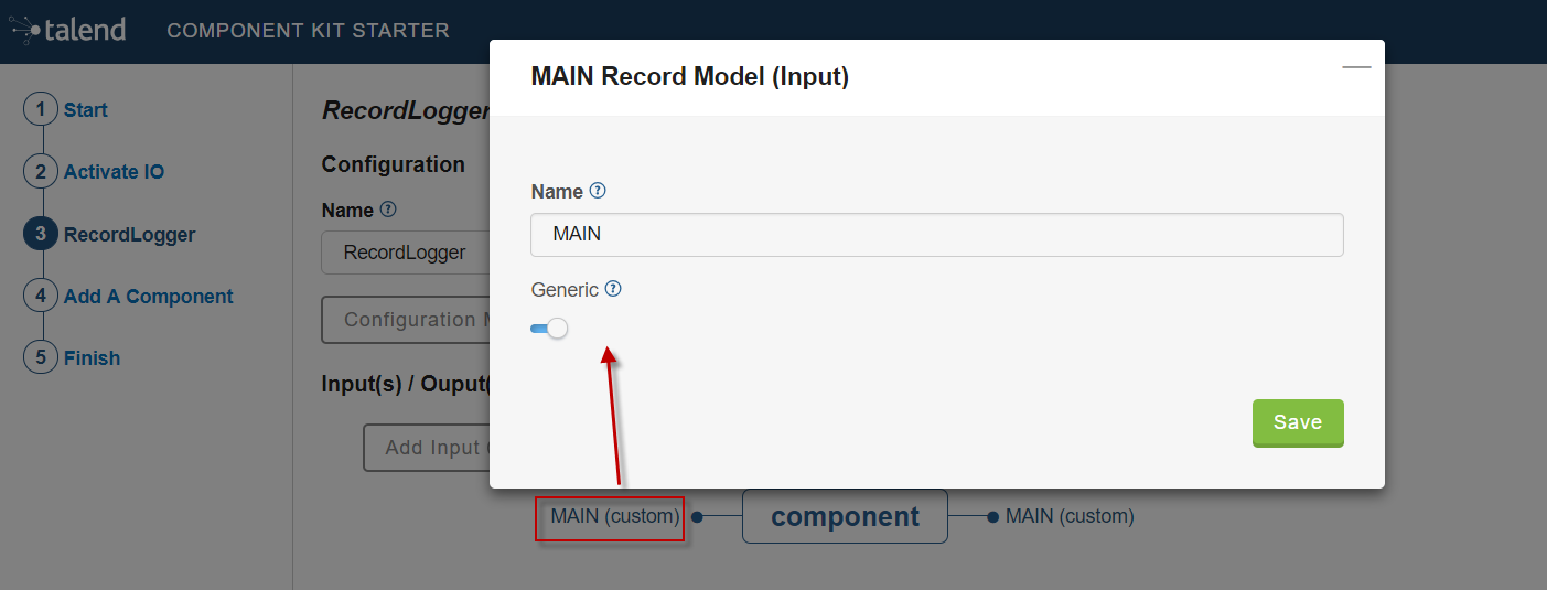The input in this tutorial is a generic record. Enable the Generic option and click Save.