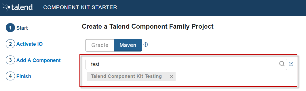 Add any facet you need. For example, add the Talend Component Kit Testing facet to your project to automatically generate unit tests for the components created in the project.